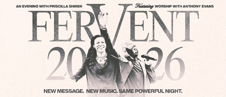 Powerful teaching, strategic prayer and inspiring worship will uplift and encourage every attendee to press into the life changing truth of Gods Word. With bestselling, influential Bible studies and multiple movie appearances, Priscilla Shirer's unwavering desire is to edify and uplift believers all over the globe, encouraging them to experience the fullness and power of living according to God's Word. Setting the atmosphere for worship at Fervent 2026, Billboard #1 awarded singer/songwriter Anthony Evans will lead our hearts in uplifting and inspiring praise featuring new arrangements of contemporary and gospel favorites, as well as exciting new music from his newest release REVIVE.
